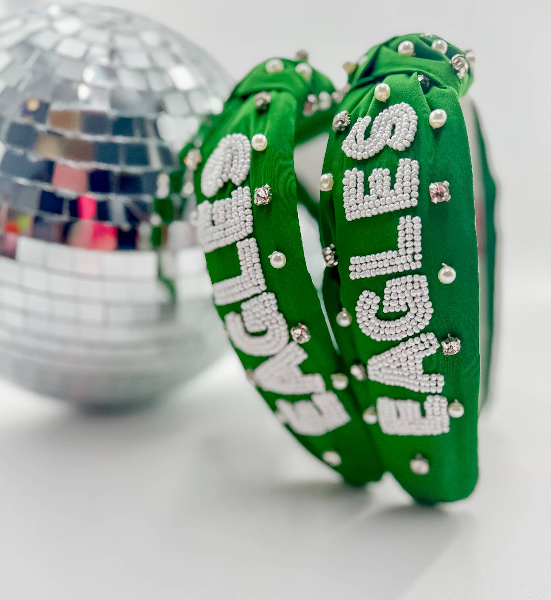 All you need for football season. This beaded and embellished headband is the perfect accessory for gameday.